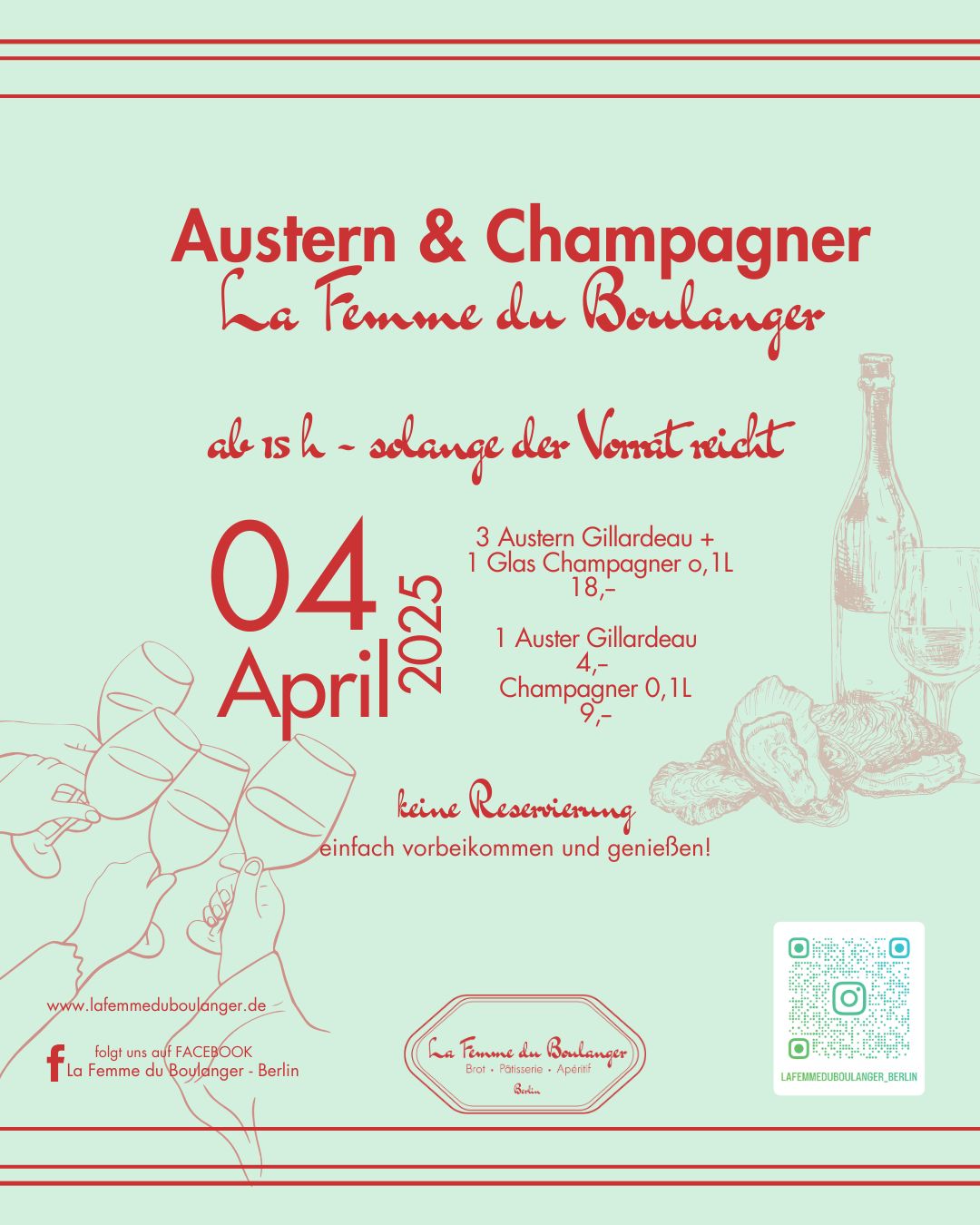 SAVE THE DATE - 05. April 2025 - ab 15h Es gibt leckerste Austern und Champagner vom Weingut @vignoblesberthier - La Clé de la Femme solange unser Vorrat reicht! Lasst uns gemeinsam anstoßen und den Frühling begrüßen. Ihr müsst nicht reservieren - aber gebt gerne Bescheid, zu wieviel Ihr kommt! Wir freuen uns auf Euch!