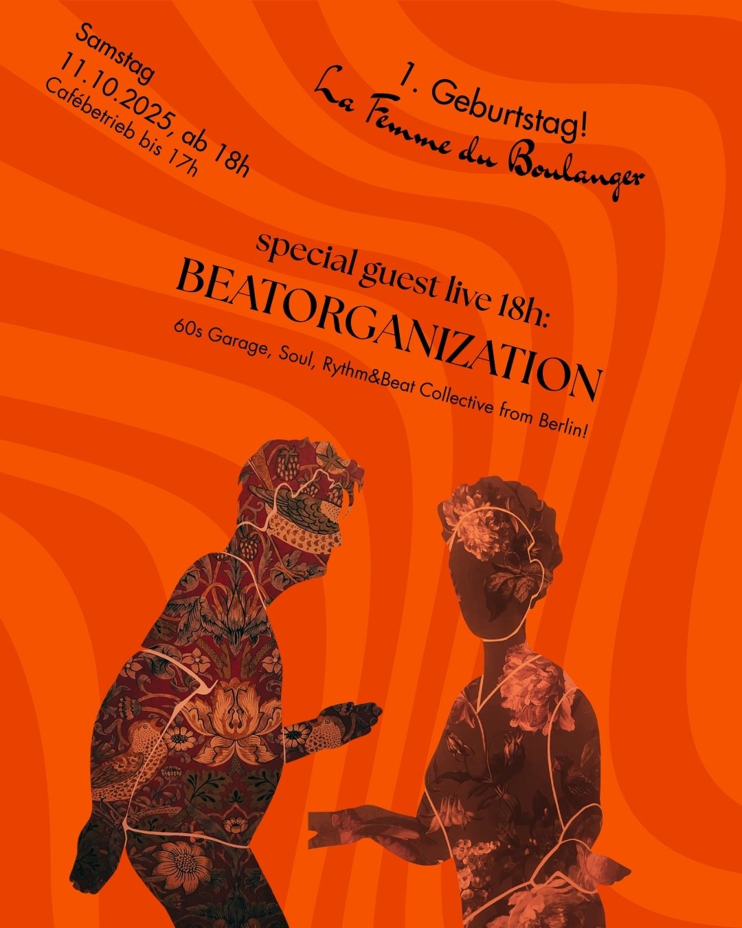 LA FEMME DU BOULANGER wird 1 Jahr alt und das muss unbedingt gebührend mit Euch zusammen gefeiert werden! Tagsüber ist @lafemmeduboulanger_berlin bis 17h im Café-Betrieb as usual und zum gemeinsamen Anstoßen, zusammen treffen geöffnet Ab 18h we proudly present the one and only BEATORGANIZATION (@beatorganization)! Keine Reservierung, keinen Eintritt - aber beste Musik, leckeres Essen, gute Drinks, viel Raum zum Tanzbeinschwingen! 11.10.2025 10h-17h CAFEBETRIEB ab 18h Live-Musik / Beatorganization La Femme du Boulanger